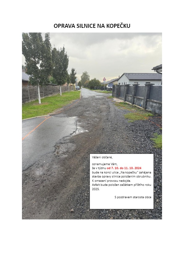 Zahájení prací od 7. 10. do 11. 10. 2024 Pokládka obrubníků